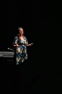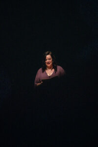 For storytellers Gabby McElwain, Bethany Green, and Mikeaela DiBerardinas, who bravely take over the stage to share their journeys of motherhood on a Sunday evening, the complexity and moments are gripping in their detail. We are right there in the trenches as Gabby remembers a postpartum magnesium drip being wheeled into her room, accompanied by barf bags and towels on ice, and a provider’s assurance that this is the worst she will ever feel in her life. We feel the chill as Bethany describes taking a call from her father, as she was beginning her own pregnancy journey. We walk in the warmth from Mikeaela, as she recalls the decision to embrace surrogacy, and a frank explanation her daughter offers to a stranger on the street.